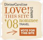I've been nominated for "Best Travel Blog" award on Divine Caroline. The contest ends soon, so I'd like to ask you to take a moment to Vote For DeliciousBaby and check out some of the other great travel blogs nominated for the award. I'm in this for the glory, so if I win, I will donate the $250 award to the World Food Program an organization that fights hunger around the world.